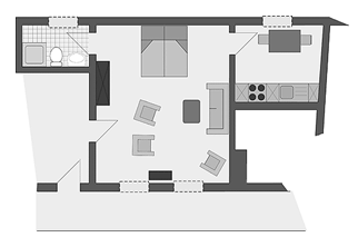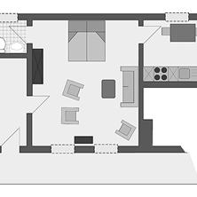 - 1 kombiniertes Wohn-und Schlafzimmer