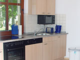 - 1 separtate Küche mit Ceranafeld, Backofen, Geschirrspüler, Mikrowelle und einem Kühlschrank mit Gefrierfach