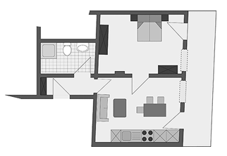- Betten: 1 King-Size, Doppel-Couche im Wohnzimmer