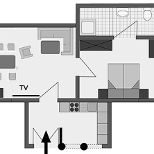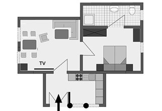 - Betten: 1 King-Size, Doppel-Couche im Wohnzimmer