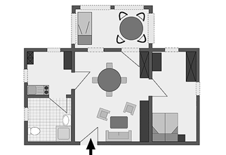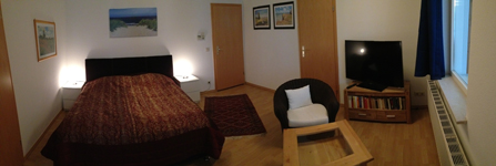 - Betten: 1 King-Size, Doppel-Couche im Wohnzimmer